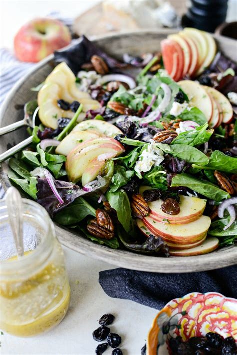 Transfer to a serving platter and sprinkle with goat cheese . My husband's favorite dessert is an apple pie or apple crisp. This deluxe version of spinach salad features a tangy sweet maple syrup. We ate all kinds of fall foods and hit the wine trail daily. Place spinach in a large bowl; Dress it up or dress it down, either way it's delicious! Ingredients · 10 oz baby spinach · 3 small gala apples or 2 medium , cored and thinly sliced · 1 cup pecans , toasted · 4 oz feta cheese , crumbled . Toss apples with 2 tablespoons of the lemon juice.